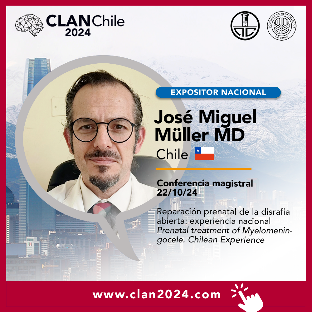 | 18:10-18:30 | Reparación prenatal de la disrafia abierta: experiencia nacional Prenatal treatment of Myelomeningocele. Chilean Experience | José Miguel Müller Chile |