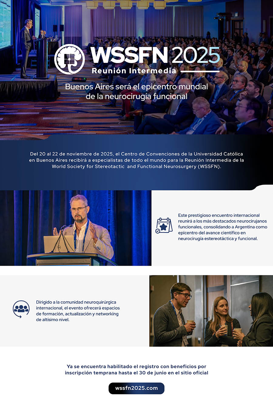 En nombre de la Sociedad Mundial de Neurocirugía Funcional y Estereotaxia (WSSFN por sus siglas en inglés) y la Sociedad Latinoamericana de Neurocirugía Funcional y Estereotaxia (SLANFE), me dirijo a usted a fin de hacerle llegar al Presidente de la Sociedad de Neurocirugía de Chile, una carta con un pedido de Auspicio y Difusión para la WSSFN 2025 Reunión Intermedia que se llevará a cabo del 20 al 22 de Noviembre en Buenos Aires.