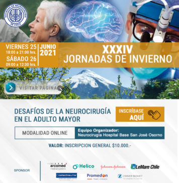 La Sociedad de Neurocirugía de Chile se complace en invitar a usted a participar de nuestra Jornadas de Invierno 2021, las que se desarrollarán los días 25 y 26 de junio próximos, organizadas por el Servicio de Neurocirugía de Osorno.