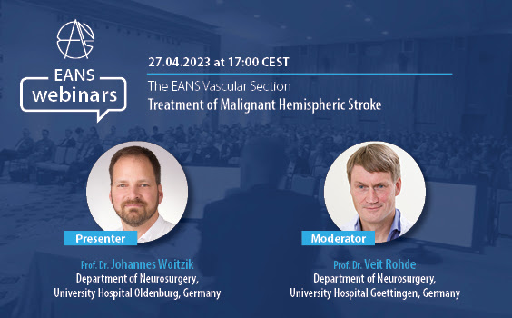 We have a pleasure to invite you to the next EANS webinar hosted by the Neuro-Trauma Section. The discussion will focus around the topic: Ethical Issues in Neurotrauma: are we operating the right indications. The invited speakers are Beáta Laki (University of Pécs, Hungary), Franco Servadei (Humanitas University and Research Hospital, Italy), Wilco Peul (Leiden