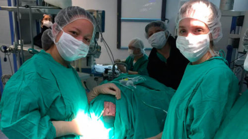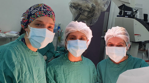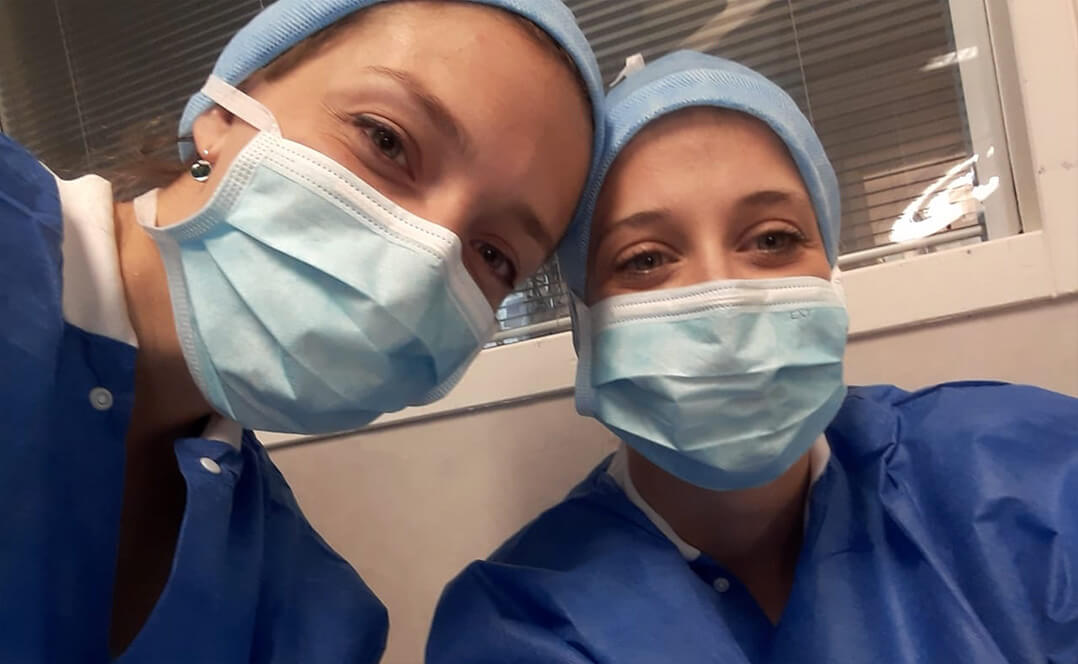 Dra. Sophie Scheel (izquierda) y Dra. Erica Pasquale (residente italiana de neurocirugía), en Montpellier, Francia