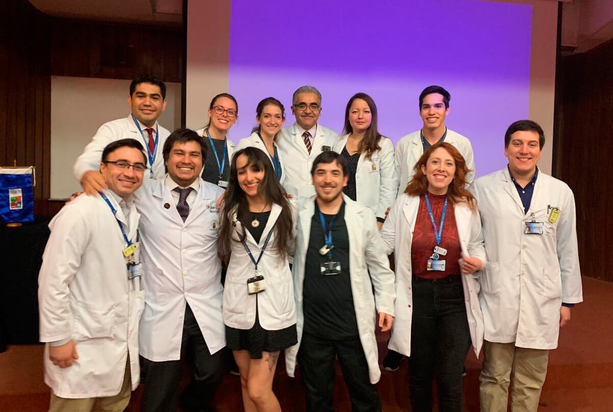 - Fila superior: Dr. Roberto Vega, Dra. Andra Simian, Dra. Sophie Scheel, Dr. Rómulo Melo, Dra. Gabriela Chica, Dr. Joaquín Vallejos. Fila inferior: Dr. Edgard Fritz, Dr. Claudio Parada, Dra. Francisca Aravena, Dr. Ramón salinas, Dra. Alejandra Morales y Dr. Andrés Rojas.